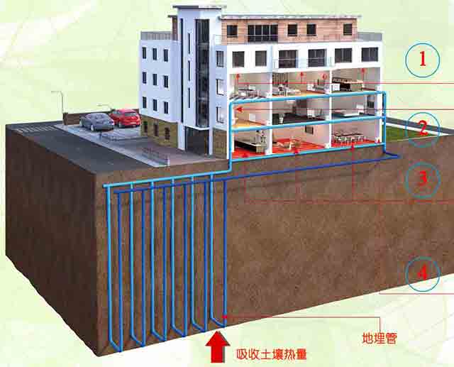 普通中央空調(diào)缺點在于天氣炎熱或者寒冷需要制冷量或熱量時效率反而下降。地溫一年四季基本恒定在14度左右,略高于地區(qū)平均溫度1-2度,使得熱泵無論在制冷或制熱工況中均處于穩(wěn)定運行狀態(tài)。